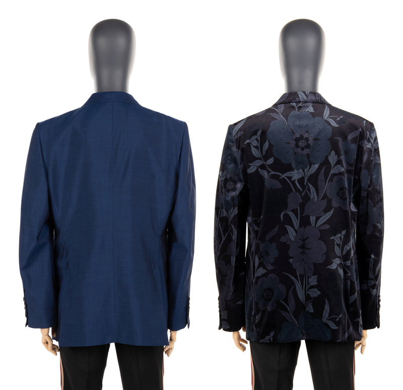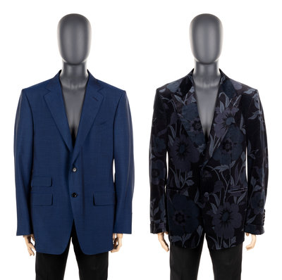 This lot includes two men's designer jackets. The pants included in the images are not included in this lot.