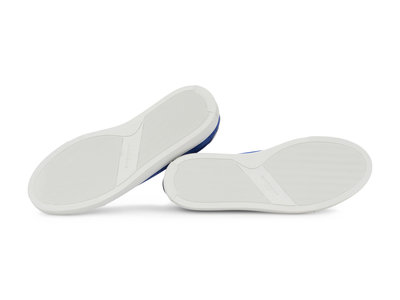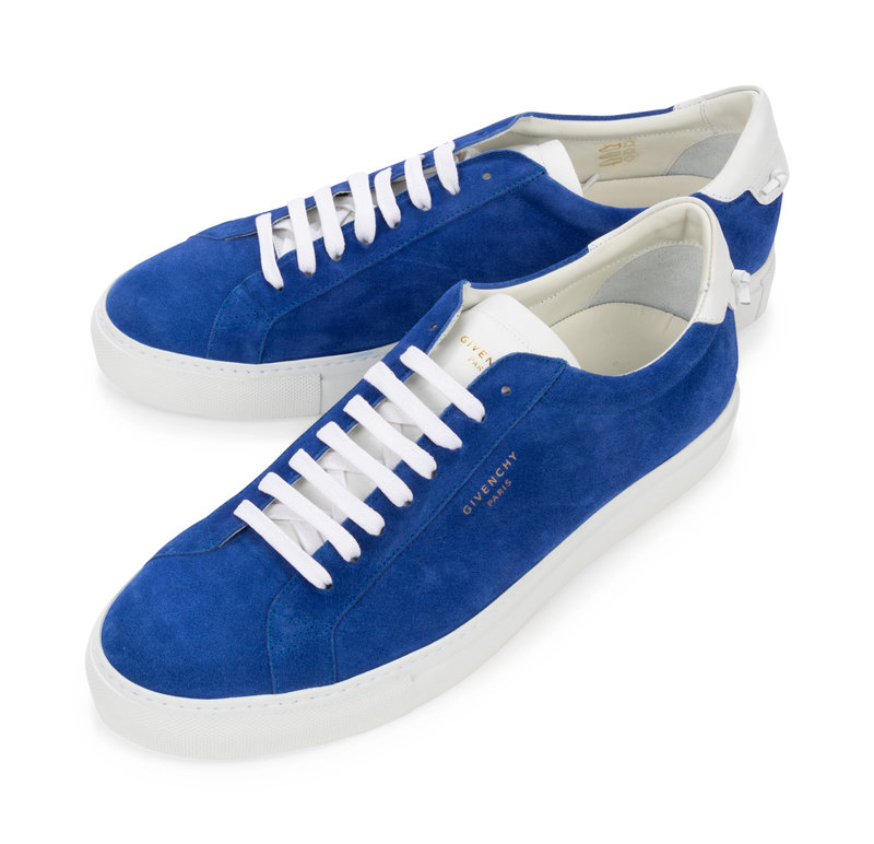 Blue seude sneakers with white sole, comes with dustbag, box, extra set of laces.