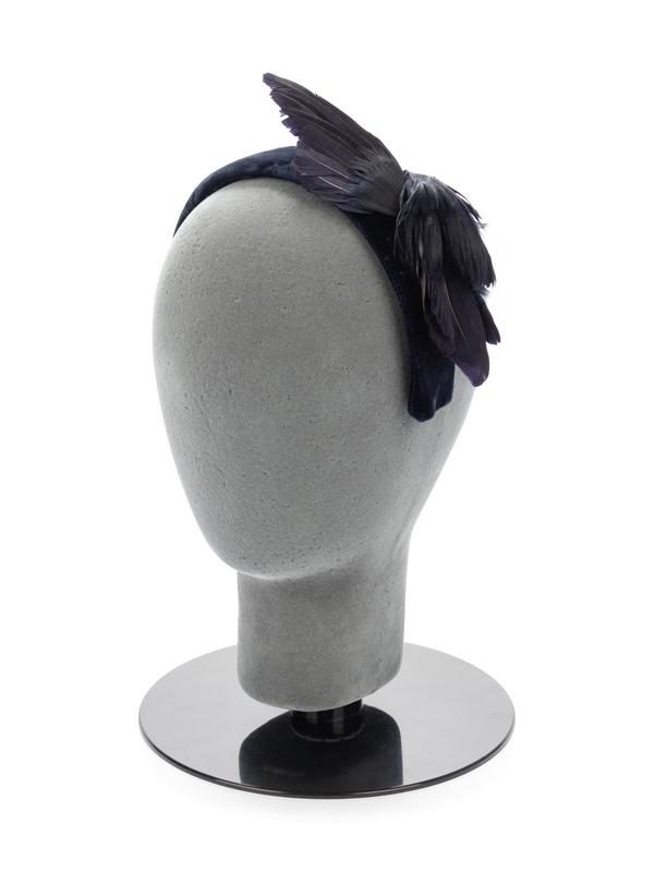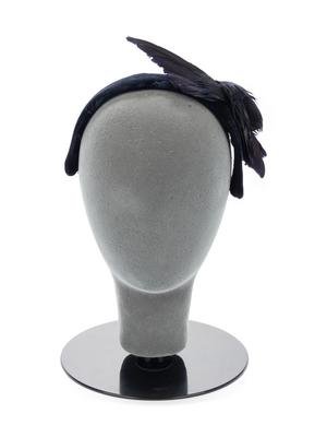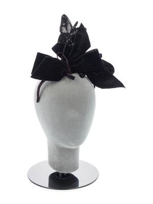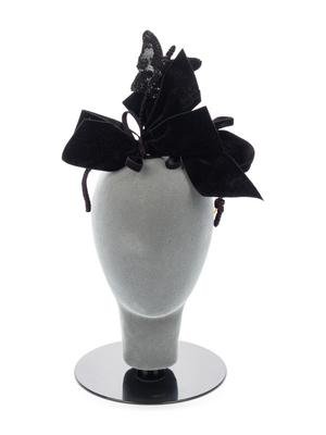 Black velvet headband with wide and thin velvet bows and black sequined butterfly.