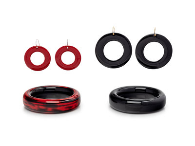 This lot includes two bangles and two pairs of earrings of Tiffany Japanese Hardwood and Lacquer.