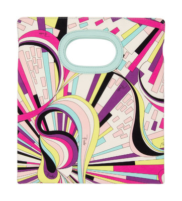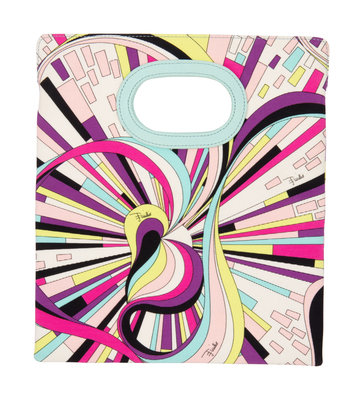 Bag printed with multicolored Pucci design and with opening/handle trimmed with blue leather.
