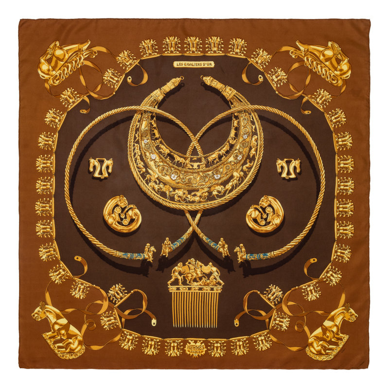 This lot includes four designer scarves; one Hermes, one Ungaro and two Yves Saint Laurent.