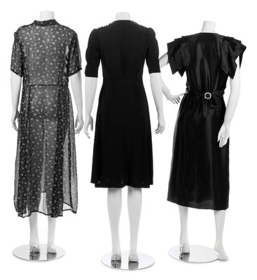Three Dresses; Two Black, One Floral Print, 1930 - 80s*