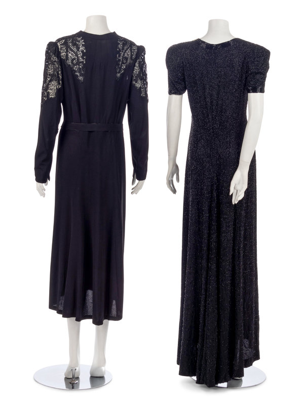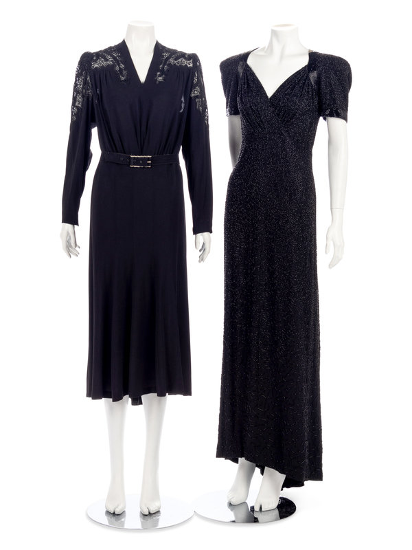 Three Dresses; One Rosenstein, One Yellow Crepe, One Black with Soutache, 1940s