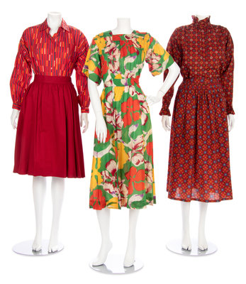 Three Vintage Designer Summer Ensembles; Two Yves Saint Laurent, One Jean Muir, 1970-80s