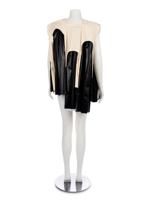 Comme des Garcons Black Faux Leather and Natural Muslin Tunic, 1990-2000s
