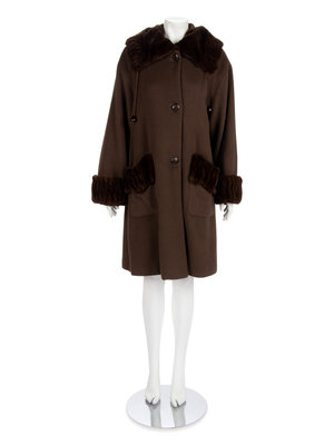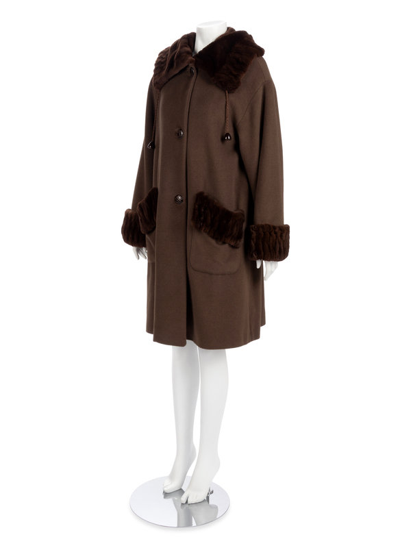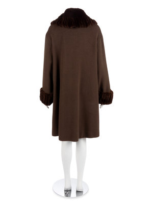 Revillon Brown Wool Coat with Brown Sheared Mink Trim, 2000-10s