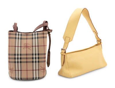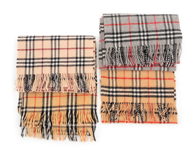 Collection of Six Burberry Items; Four Scarves, Two Bags, 1990-2000s
