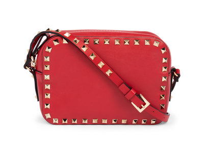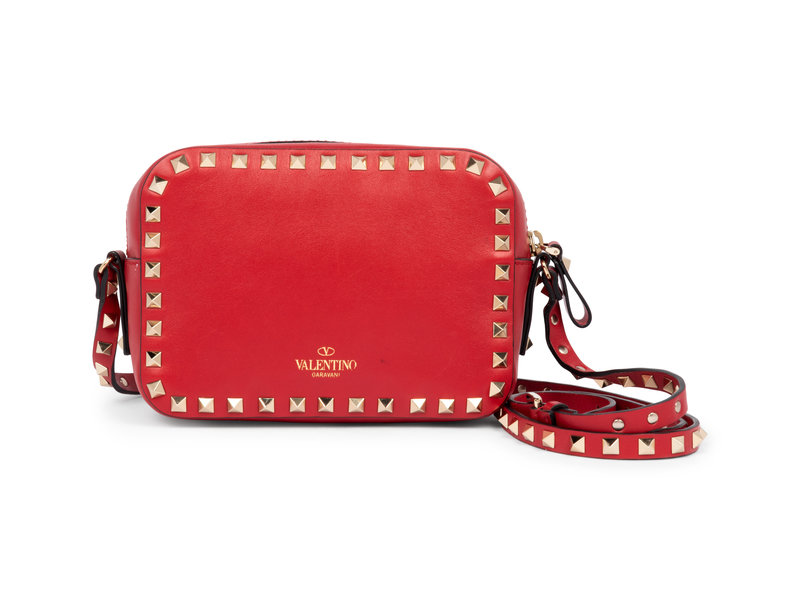 Valentino Red Leather Rockstud Cross Body Camera Bag, 2017