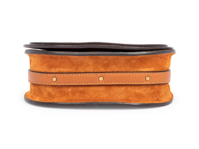 Caramel smooth calfskin crossbody bag with suede sides, gold-tone hardware and