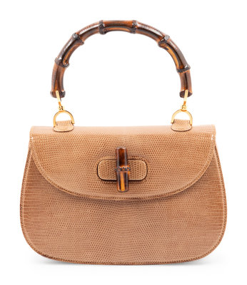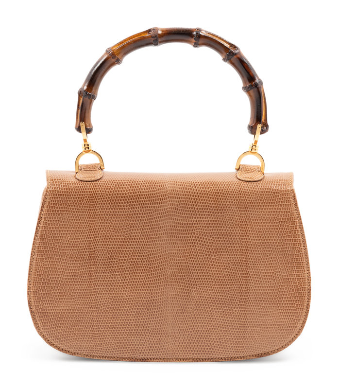 Gucci Brown Lizard Handbag with Bamboo Handle