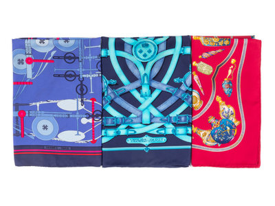 This lot includes three Hermès scarves.
