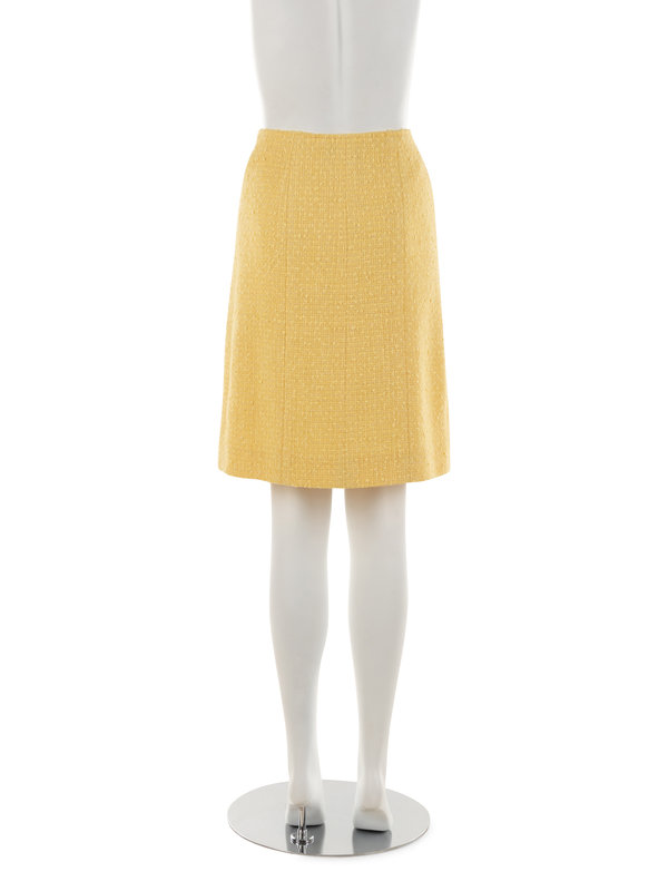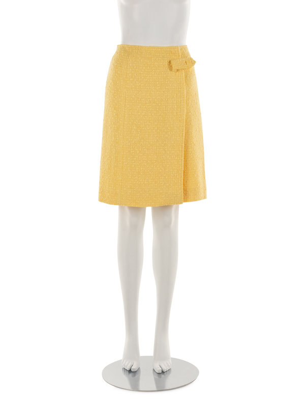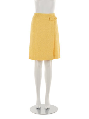Yellow cotton blend bouclé wrap skirt.
