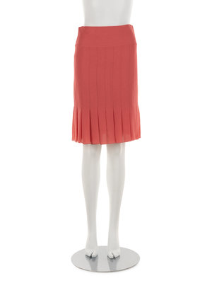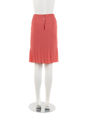 Salmon pink silk skirt with stitched pleating and center back buttoned waistband.