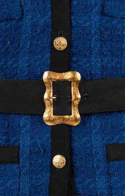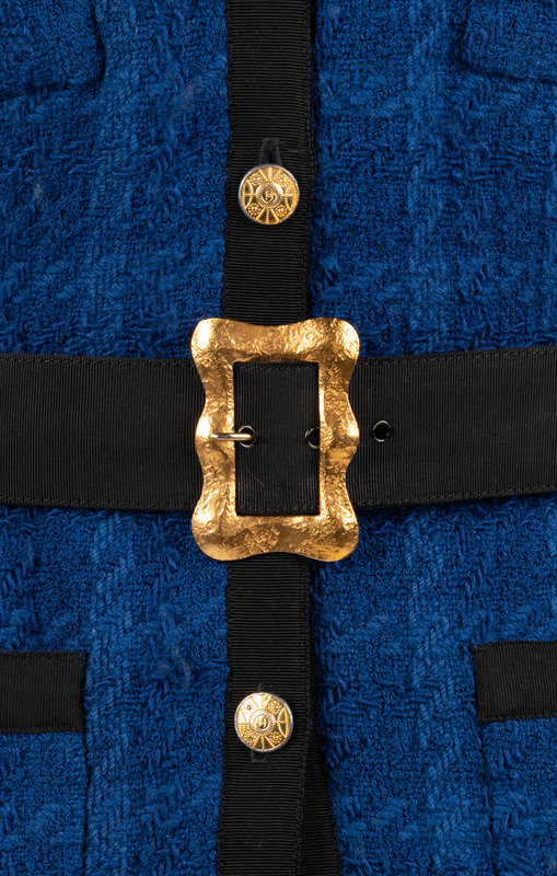 Chanel Blue Skirt Suit with Belt, 1990-2000s