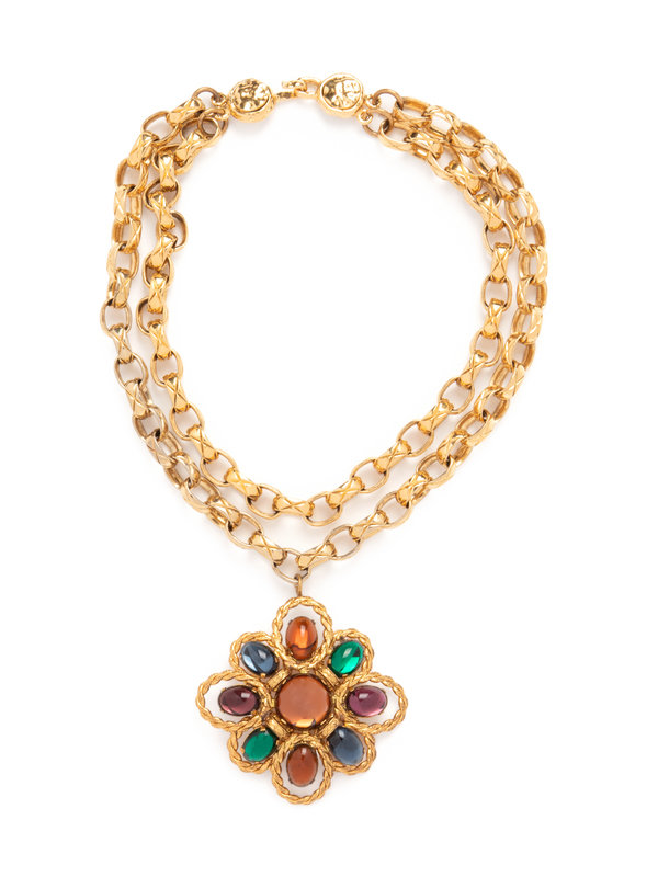 Chanel Chain Link Necklace with Glass Flower, c1985