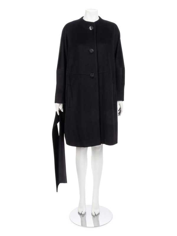 Dejac Black Cashmere Wool Coat with Scarf, 2010s
