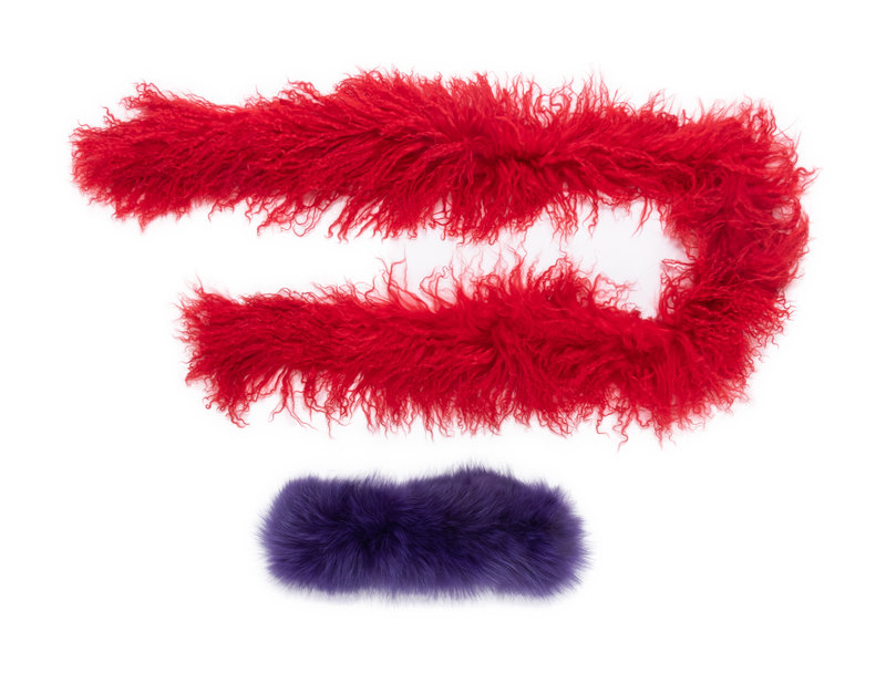 Red Mongolian lamb fur scarf