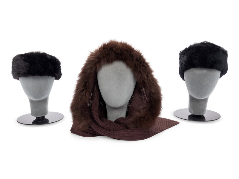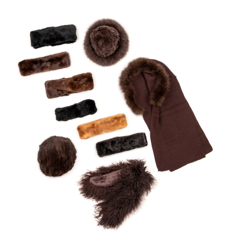 Collection of Twelve Fur Pieces; Six Fur Headbands, Two Hats, Two Scarves, and Two Colored Fur Articles, 1980-2010s