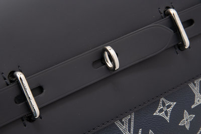 Main textile: Midnight blue monogram coated canvas with lion print