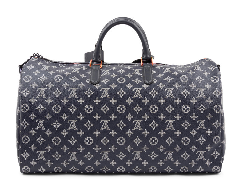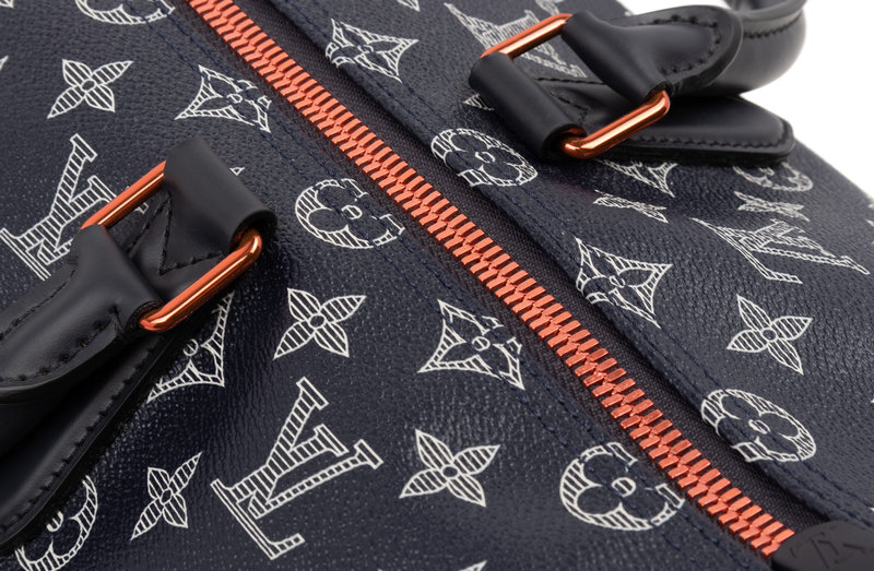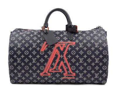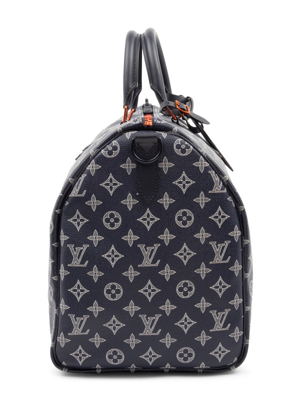 Louis Vuitton Limited Edition Keepall Bandoulière 50 in Monogram Ink Canvas with Upside Down LV logo line print - Fall Winter Precollection 2018. Comes with dust bag.