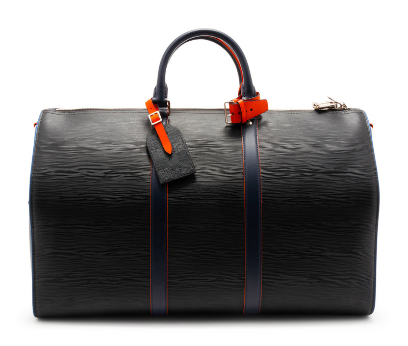 Louis Vuitton Limited Edition Keepall Bandoulière 50 in Black Epi Leather, Patchwork-2018. Comes with dust bag.