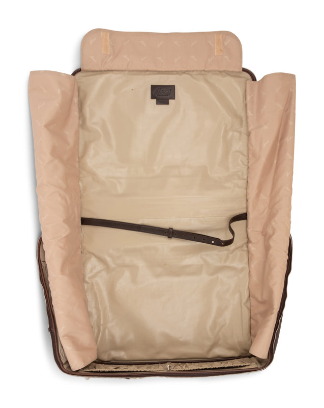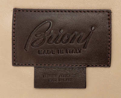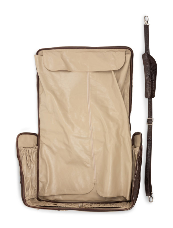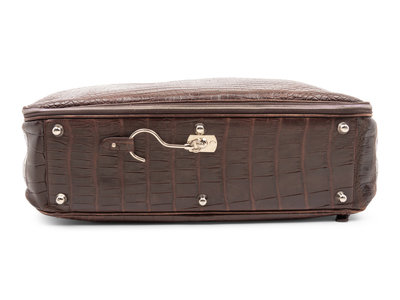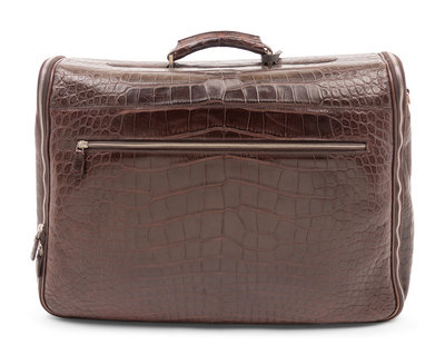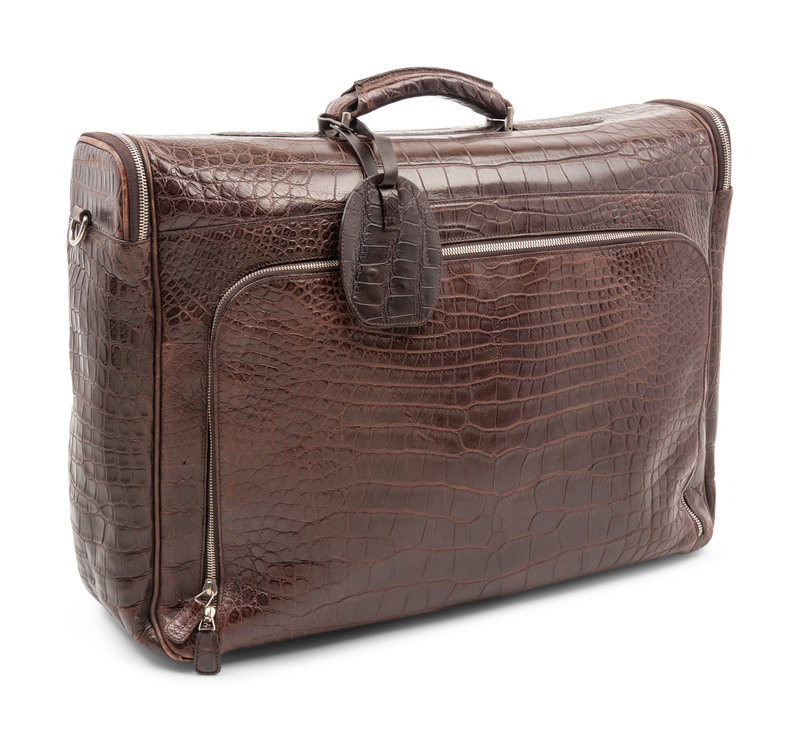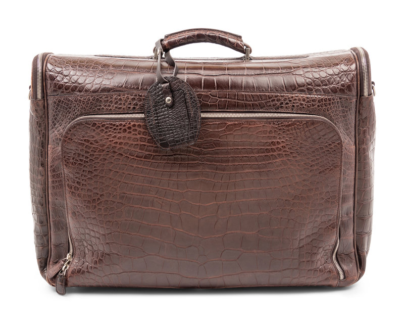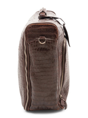 Brioni brown alligator zip closure garment bag with silver-tone hardware.