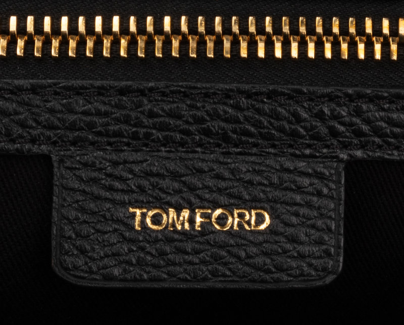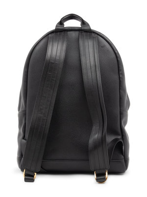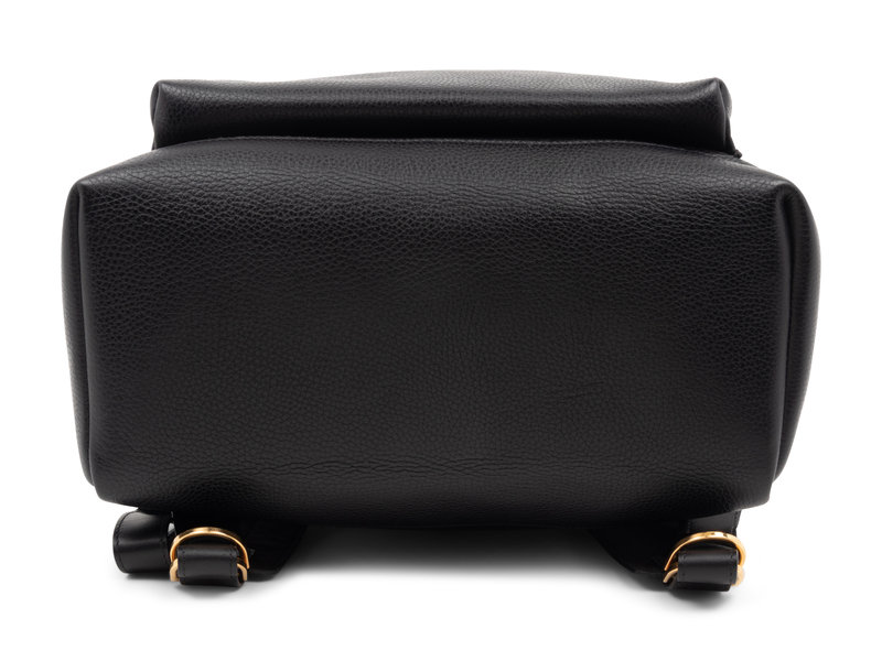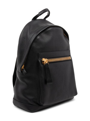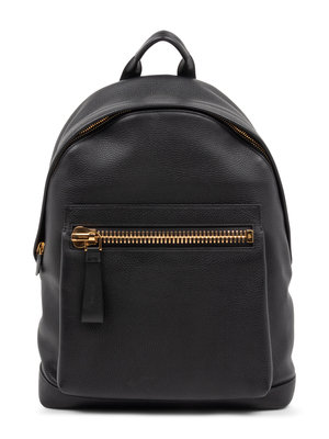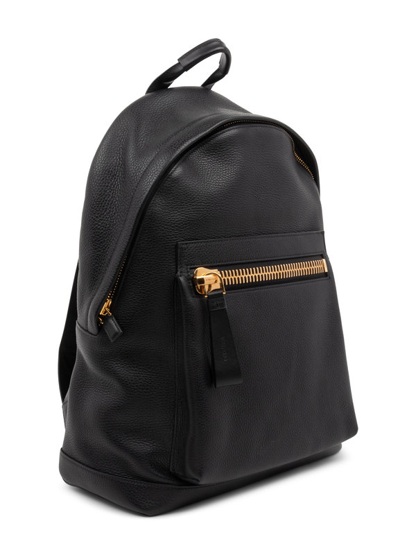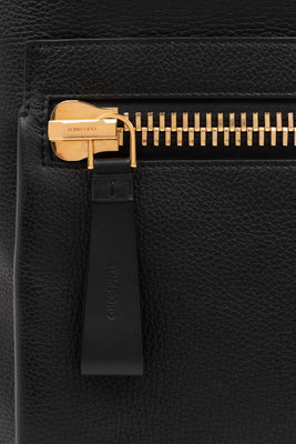 Tom Ford Buckley backpack in black full grain leather with gold-tone hardware and exaggerated front zipper pocket, 2014.