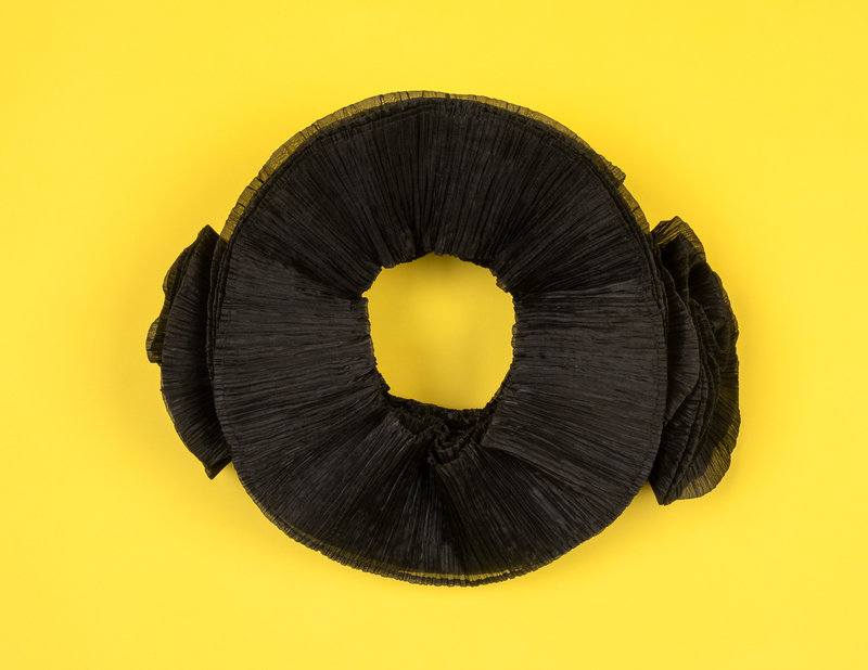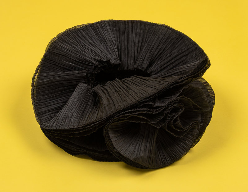 Reminiscent of Japanese paper lanterns and the space age, the Flying Saucer dress continues Miyake's use of the pleating technology he introduced in 1990.