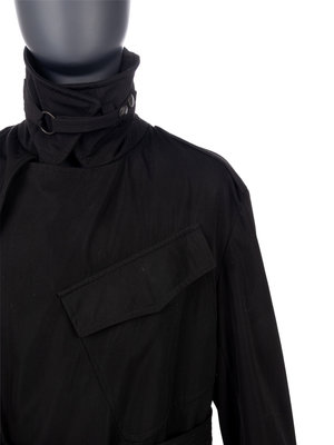 Black wool/acrylic blend men's trench coat.