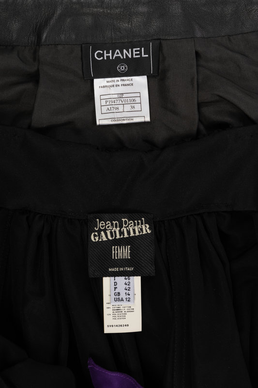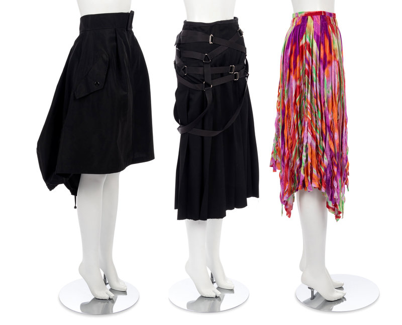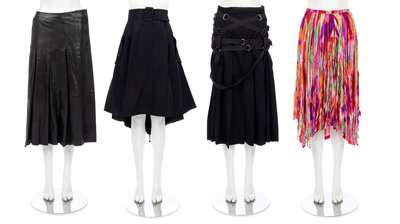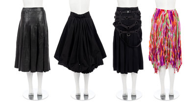 Four Designer Skirts: Chanel, Comme, Gaultier, Miyake, 2000s