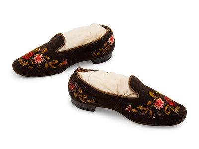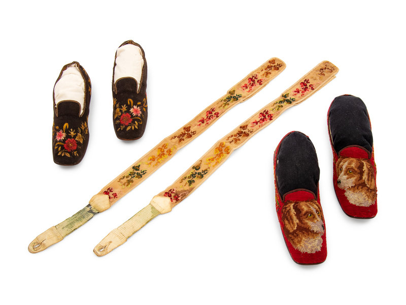 Three 19th Century Menswear Accessories; Two Pairs of Slippers, One Pair of Braces/Suspenders