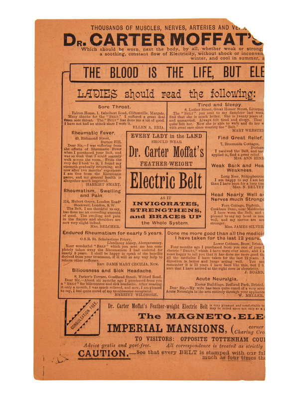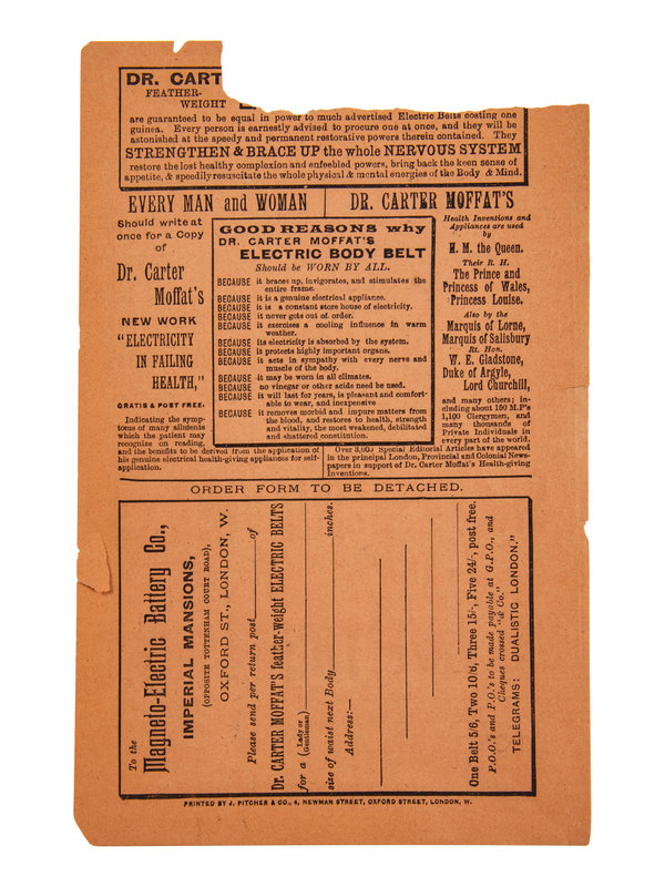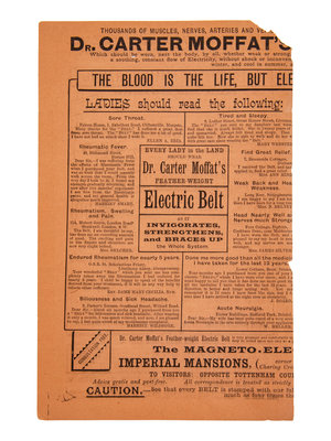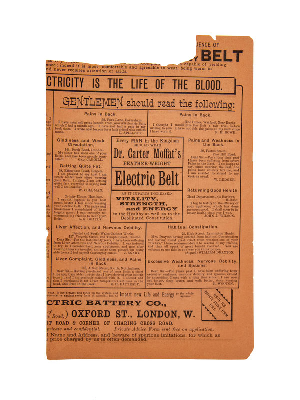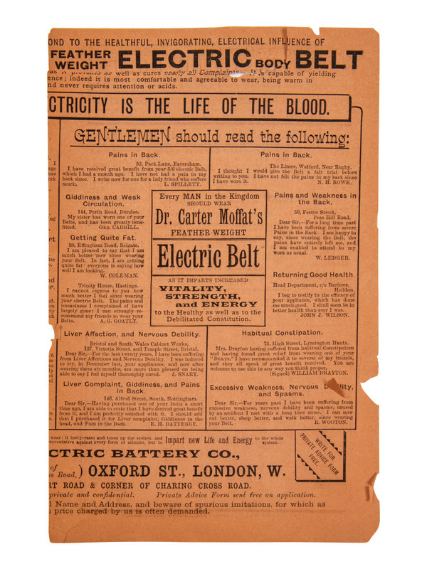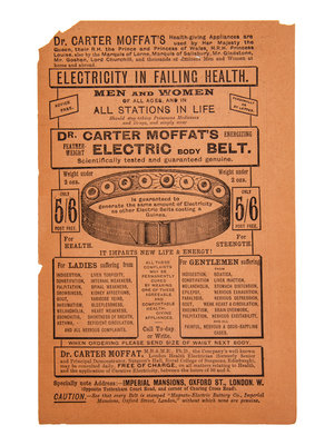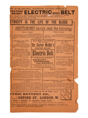 Dr. Carter Moffat's Feather Weight Electric Belt Advertisement, ca. Late 19th Century