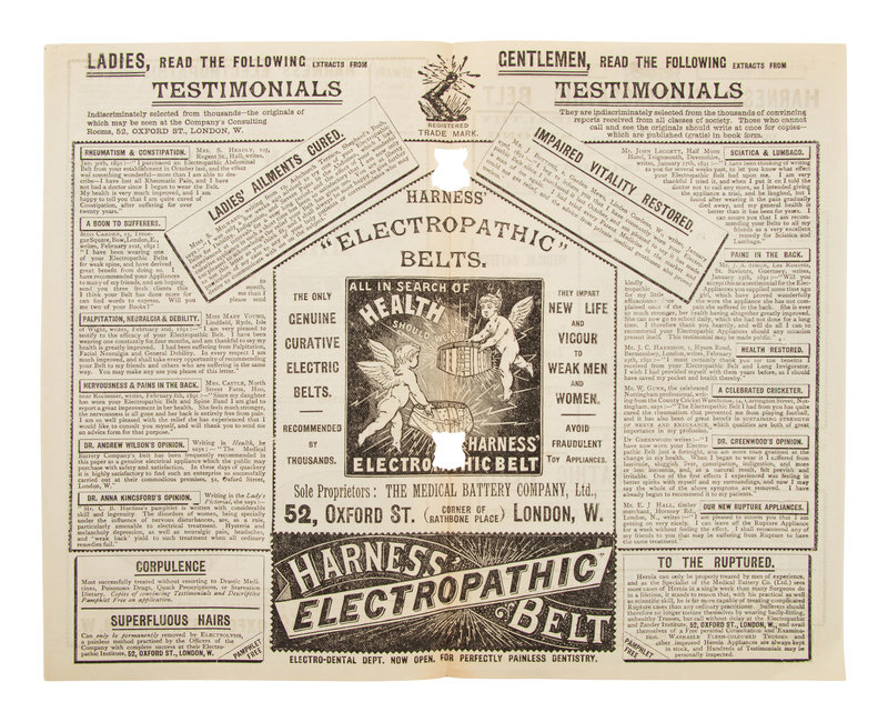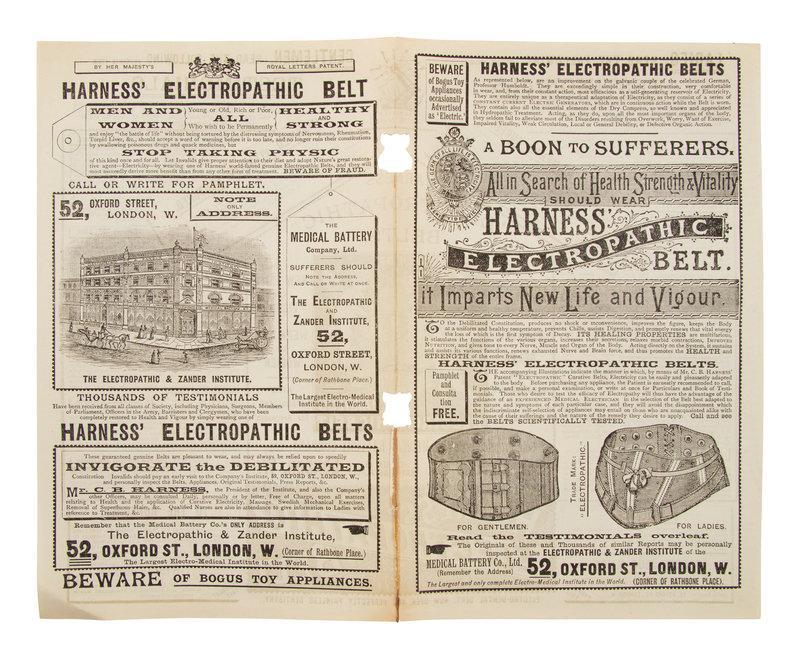 Harness' Electropathic Belt Advertisement, ca. Late 19th Century