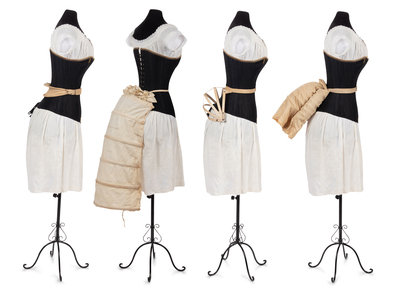 Collection of Seven Bustles and One Skirt Supporter, 1870-80s