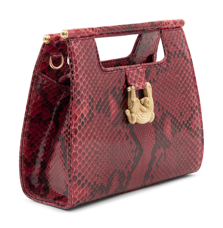 Kieselstein-Cord handbag in magenta snakeskin, 1993. Comes with dust bag.