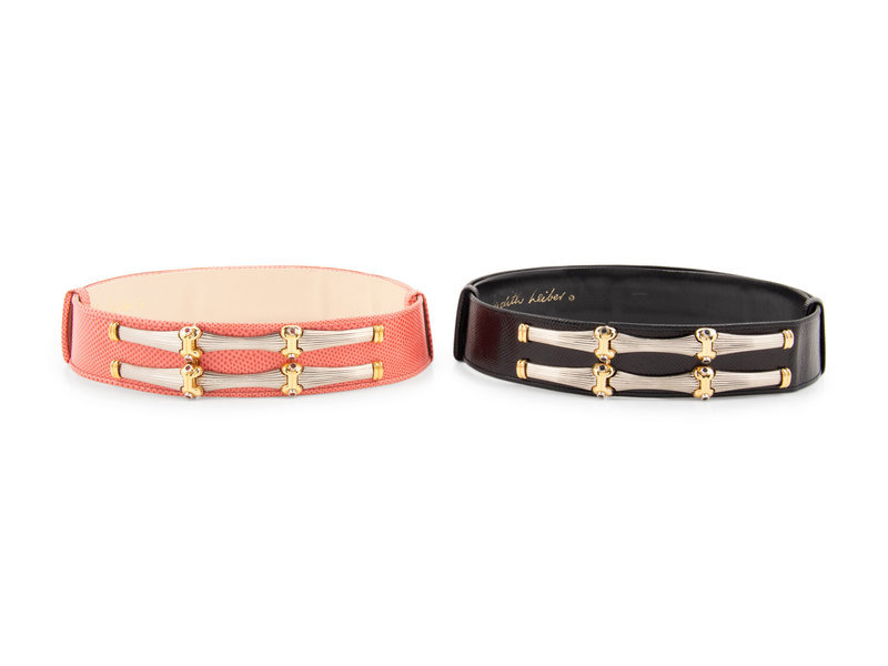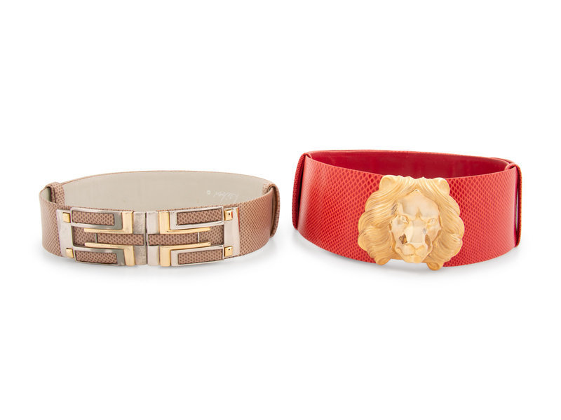 Collection of Five Judith Leiber Items; One Leather Shoulder Bag and Four Belts