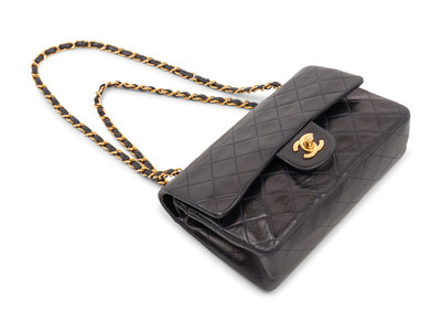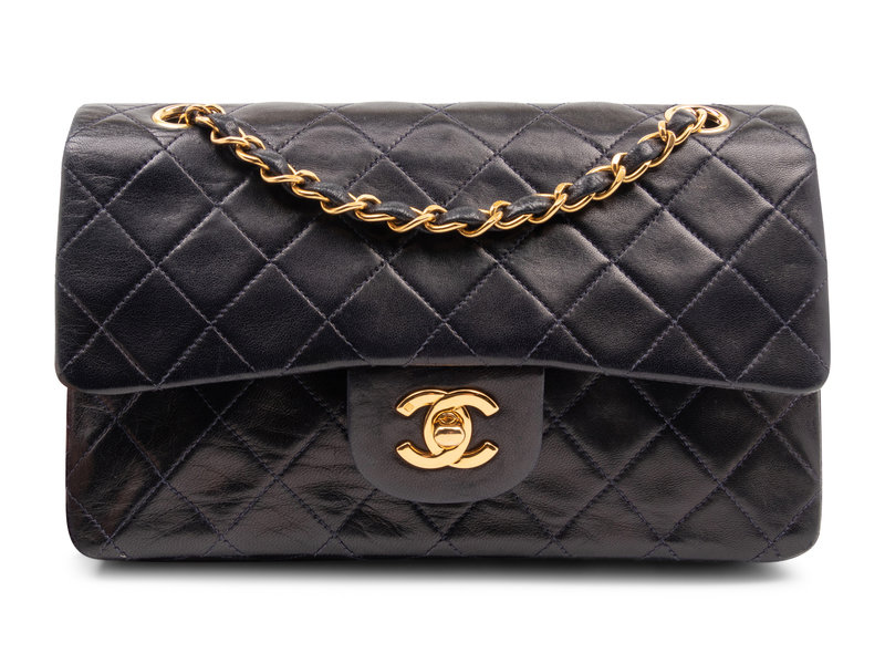 Chanel medium Classic Double Flap Bag in navy calfskin leather-1996-1997. Comes with dust bag.
