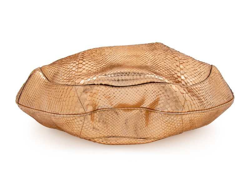 Gucci Peggy hobo bag in copper metallic python snakeskin and bamboo handle. Comes with dust bag.