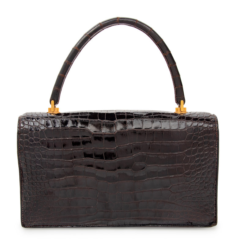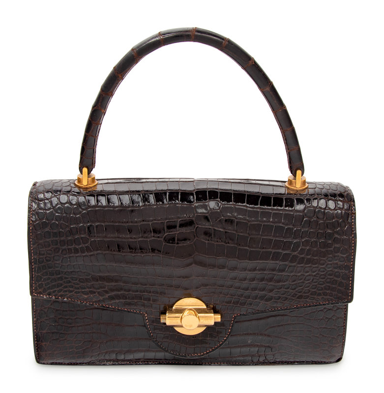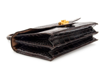 Hermès Sac Torpedo handbag in chocolate brown crocodile.