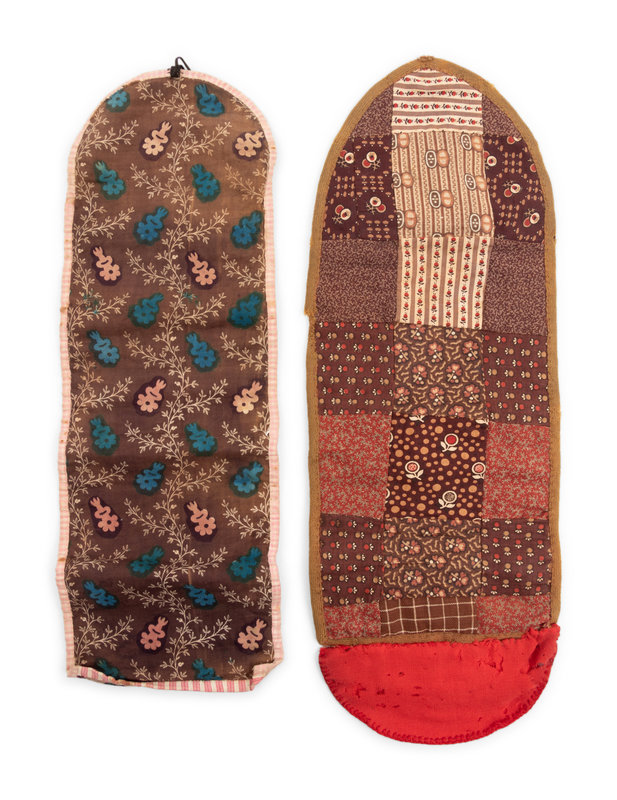 Brown patchwork printed cotton "housewife" or sewing kit.