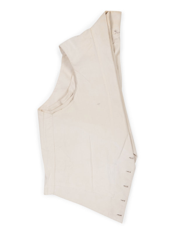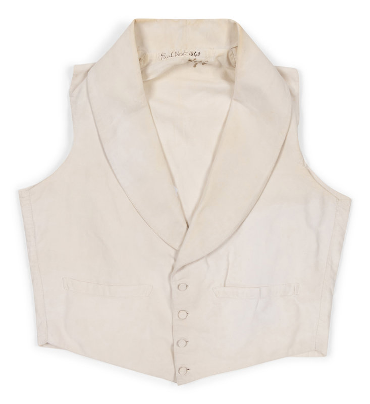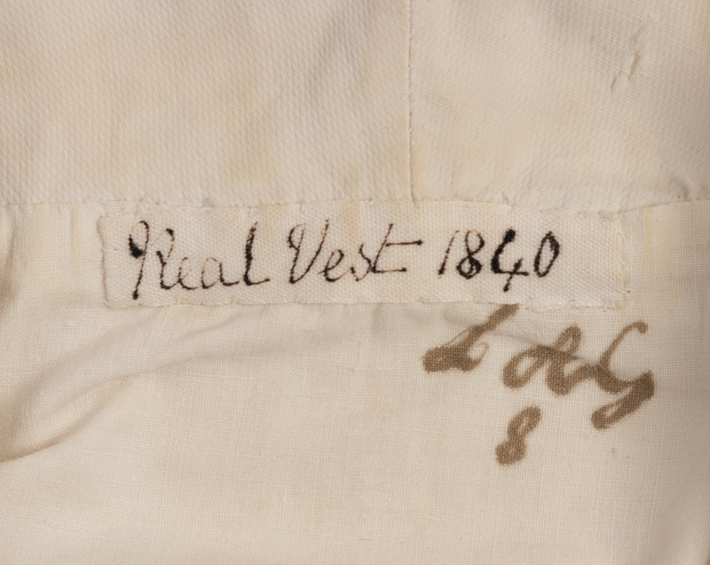 Unlabeled, though there is a handwritten label on the inside center back neck: "Real Vest 1840".