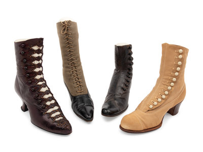 Collection of Footwear; Four Pairs of Boots, Two Pairs of Spats, 19th and Early 20th Century