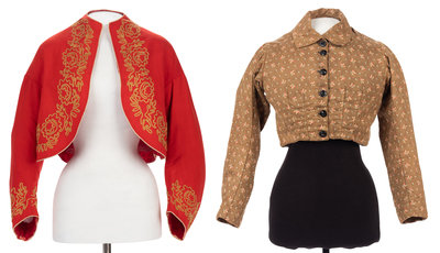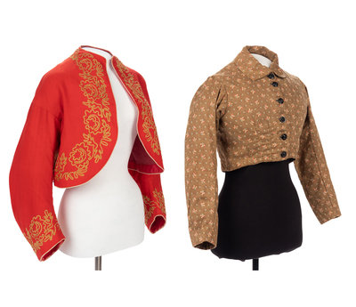Three Bodices, Including Zouave Style Bolero, 1860s