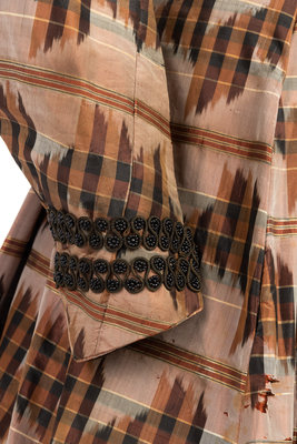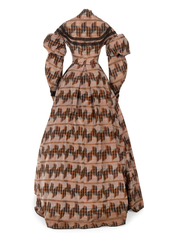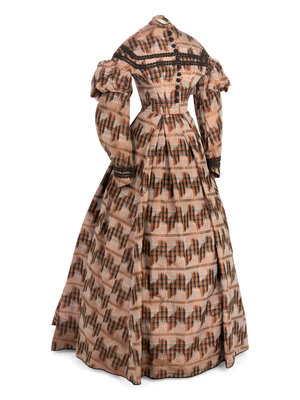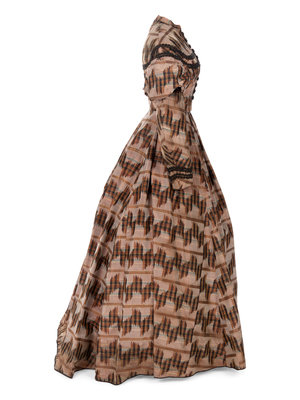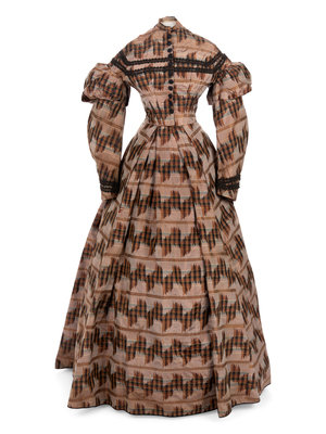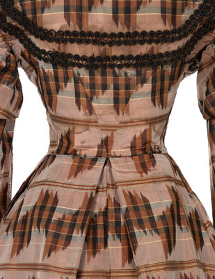 Silk Taffeta Dress with Ikat Print, 1860s