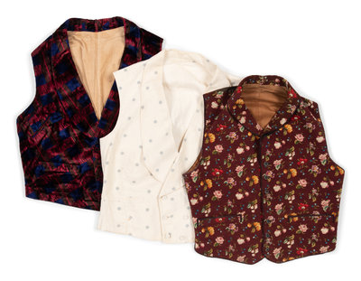 Three Men's 19th Century Waistcoats/Vests, 1840-60