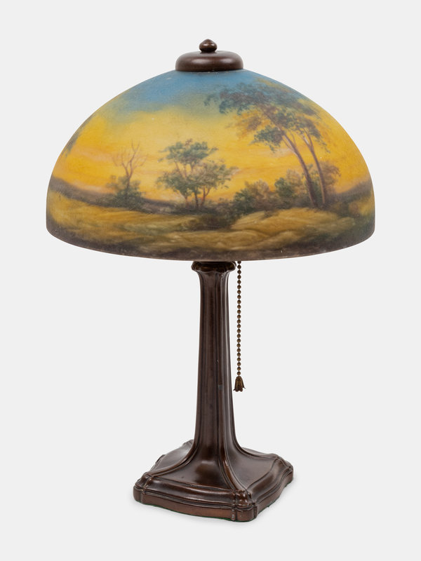 impressed manufacturer's stamp to bronze with painted signature '2704 Jefferson C' to lamp shade