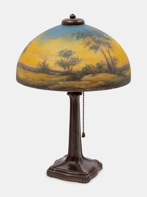 bronze, reverse-painted glass