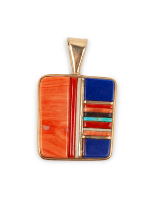 Gold Tufa Cast Loloma-style Pendant, with Inlay