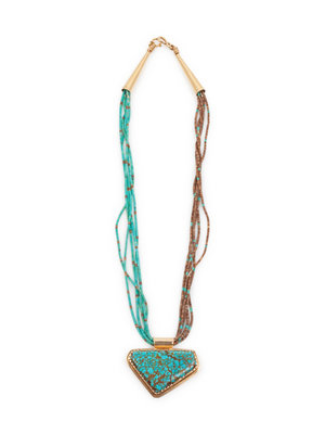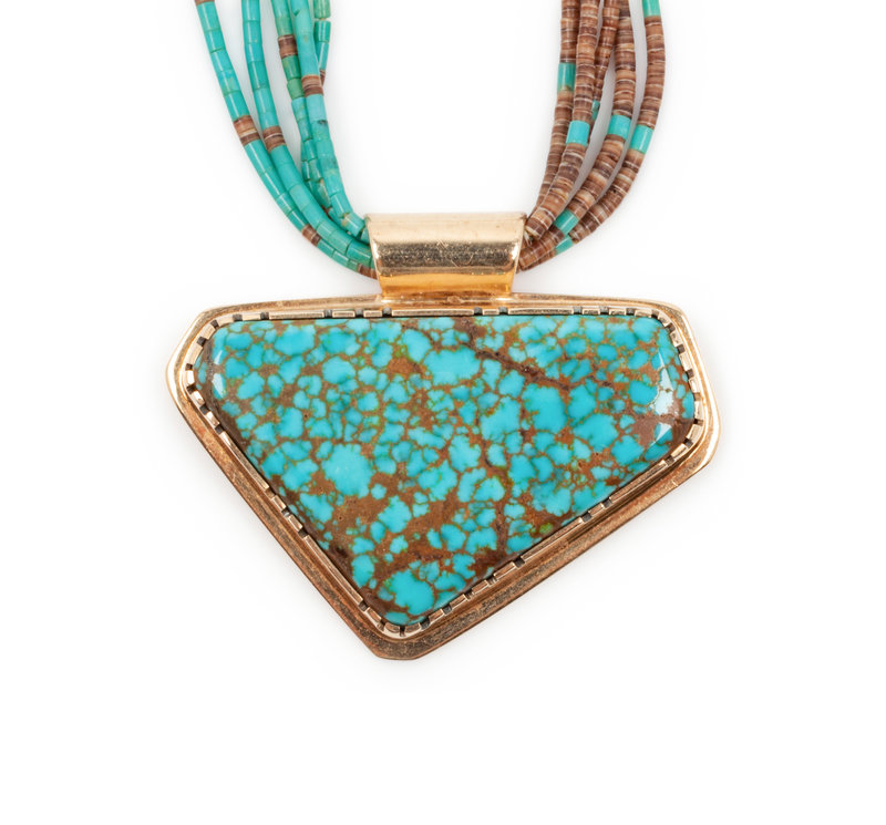 Rolled Turquoise and Heishi Multi-Strand Necklace, with 14k Gold and Turquoise Pendant